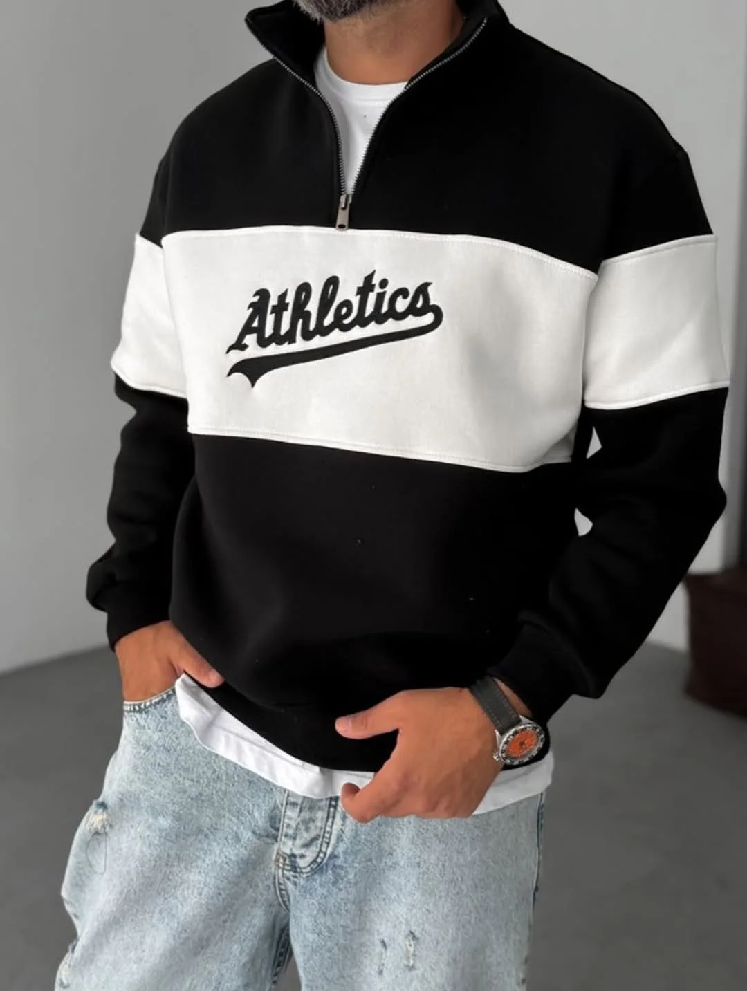 سويت شيرت “Athletics” نص سوسته خامة قطن صافي 100% 💯